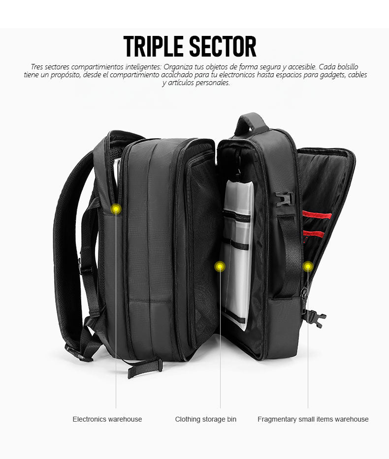 - Comodidad: Su diseño ergonómico con correas ajustables y acolchadas, junto con un sistema de ventilación en la espalda, aseguran una distribución uniforme del peso y una experiencia de transporte cómoda durante todo el día.