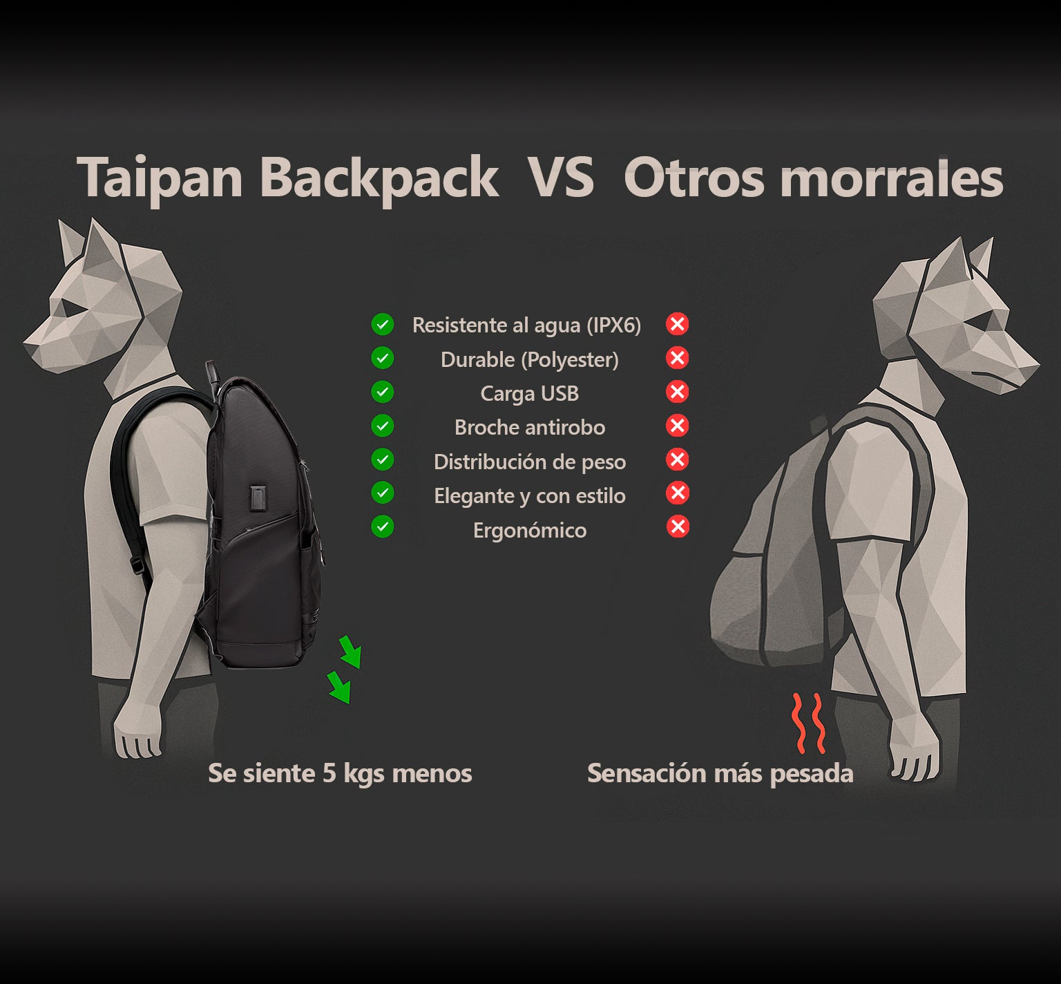 La mochila impermeable Taipan x Arctic Hunter para hombre combina estilo, funcionalidad y seguridad, convirtiéndola en una opción ideal para profesionales y viajeros. A continuación, se detallan sus principales características: